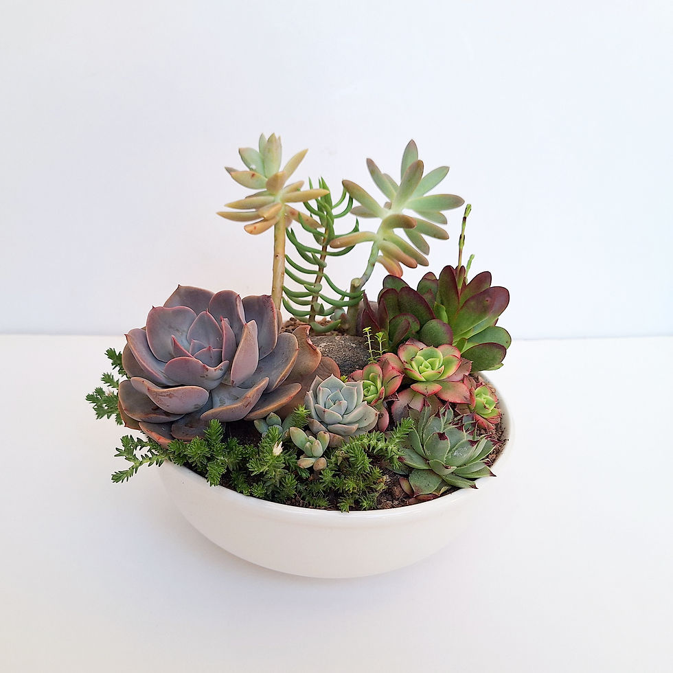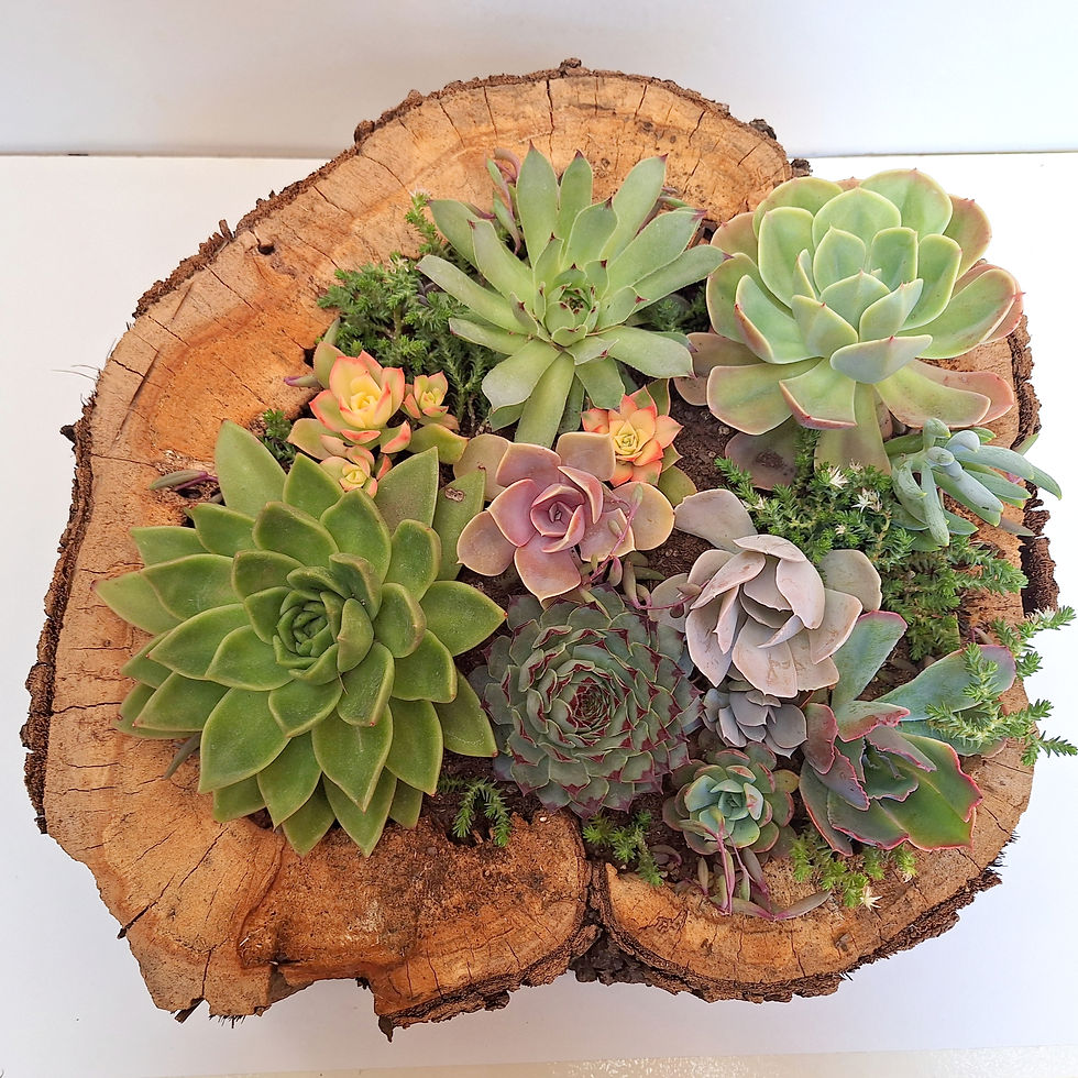 Cada mini jardín es distinto: combinamos suculentas, texturas y colores para crear composiciones originales.