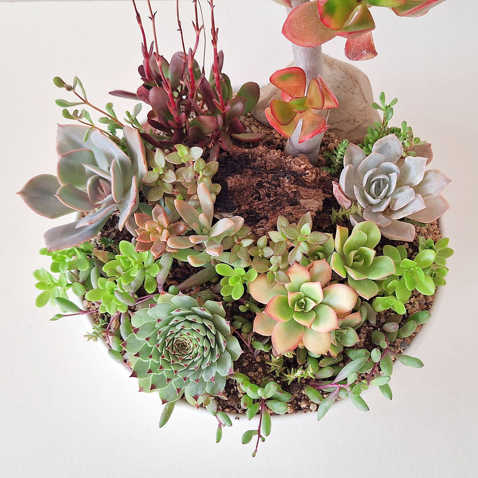 Cada mini jardín es distinto: combinamos suculentas, texturas y colores para crear composiciones originales.